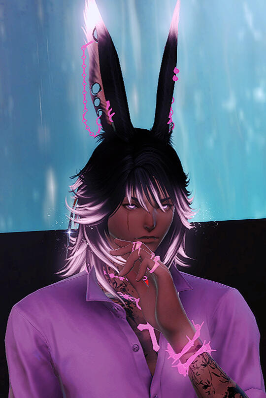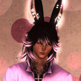 Ukyo Bugai is a abnormally tall and physically capable Viera, he was raised by his father(Galliard Bugai) and his mother (Staria Bugai). His parents were farmers and grew wonderful crops and had amazing green thumbs and liked to stay out of trouble, and because of their good reputation they were invited to ishguard to take new world crops into the city where he was born, he instantly loved the cold and adores snow wherever he sees it. And because of his wonderful parents he was gifted with amazing patience, kindness and a charismatic attitude toward life. As he grew up his body kept hitting growth spurt after growth spurt, once he reached 19 his growing slowed but he still does grow even as he is about to turn 21. He trained himself in hand to hand combat for fun and loved to wrestle the yetis in corethas, it was the best way to get his energy out since almost no one could handle him. Then around when he was 16 he bumped into a gunbreaker on a escort mission Taking a "princess" through the city and decided he would do that. After that he spent 4 years learning the gunblade in the harsh environments of eorzea he wandered from town to town inn to inn for that time period, he trained night after night day after day, days turned to weeks, weeks into months and months into years, when he finally felt ready he returned to his parents and they welcomed him back and gave him some funds for his first set of gear. Once he had his gear he then started his journey, starting off with odd jobs and later cargo escorts. Until one day a ishguard noble, a elezen, to be percise came up to him and offered him a large some of money to escort his daughter through a dangerous area, he agreed and began his journey. While escorting her she seemed to be extremely snobby and horrible to work with and got him injured a few times. Luckily he had a lot of potions, then after the mission he was paid a large some of money and bought his own home in the goblet, once he settled himself in he uses all his spare funds to supply his parents. After gaining some popularity for himself because he was efficient in his work, he returned home to find his parents home being invaded and torn apart. Then he saw his fathers headless corpse on the porch and heard his mother's scream from inside. He ran inside to discover the same elezen who had hired him, trying to kill his mother, the words that spilled from his mouth were so guttural and intense he himself didn't believe it was possible for him to utter those words, as those words left his mouth he launched a punch so powerful it caved the elezens skull in. In that very moment he realized he could not use his hands for combat unless absolutely Necessary, his mother didn't question it and he now takes care of her in his off time